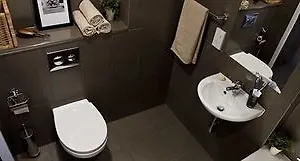 In the bathrooms, guests have an access to a higher level toilet, a lower bathroom sink, and a shower.